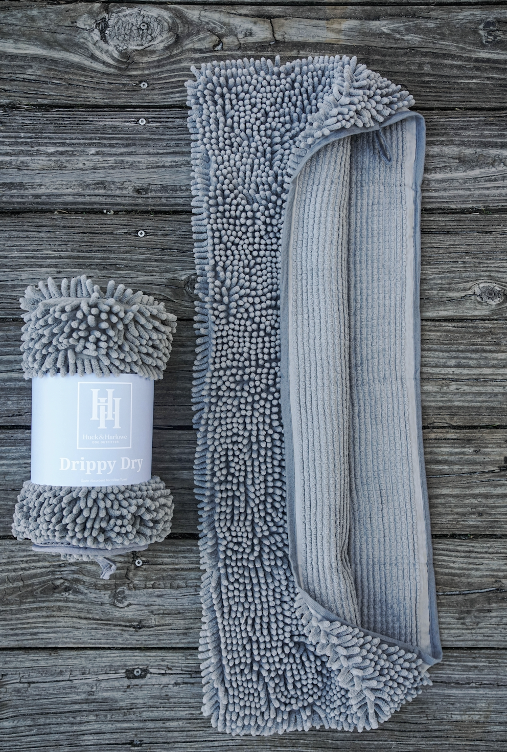 Drippy Dry is a super absorbent microfiber towel that is perfect for drying off your dog. This soft towel holds up to seven times its weight in water, is hypoallergenic, lighter than cotton, dries out fast and even attracts dirt. Plus, the duel hand pockets make it easy to use on even your most squirmy dog. Keep one handy for the beach dog, run in the rain dog, bath time dog, and wet grass dog.