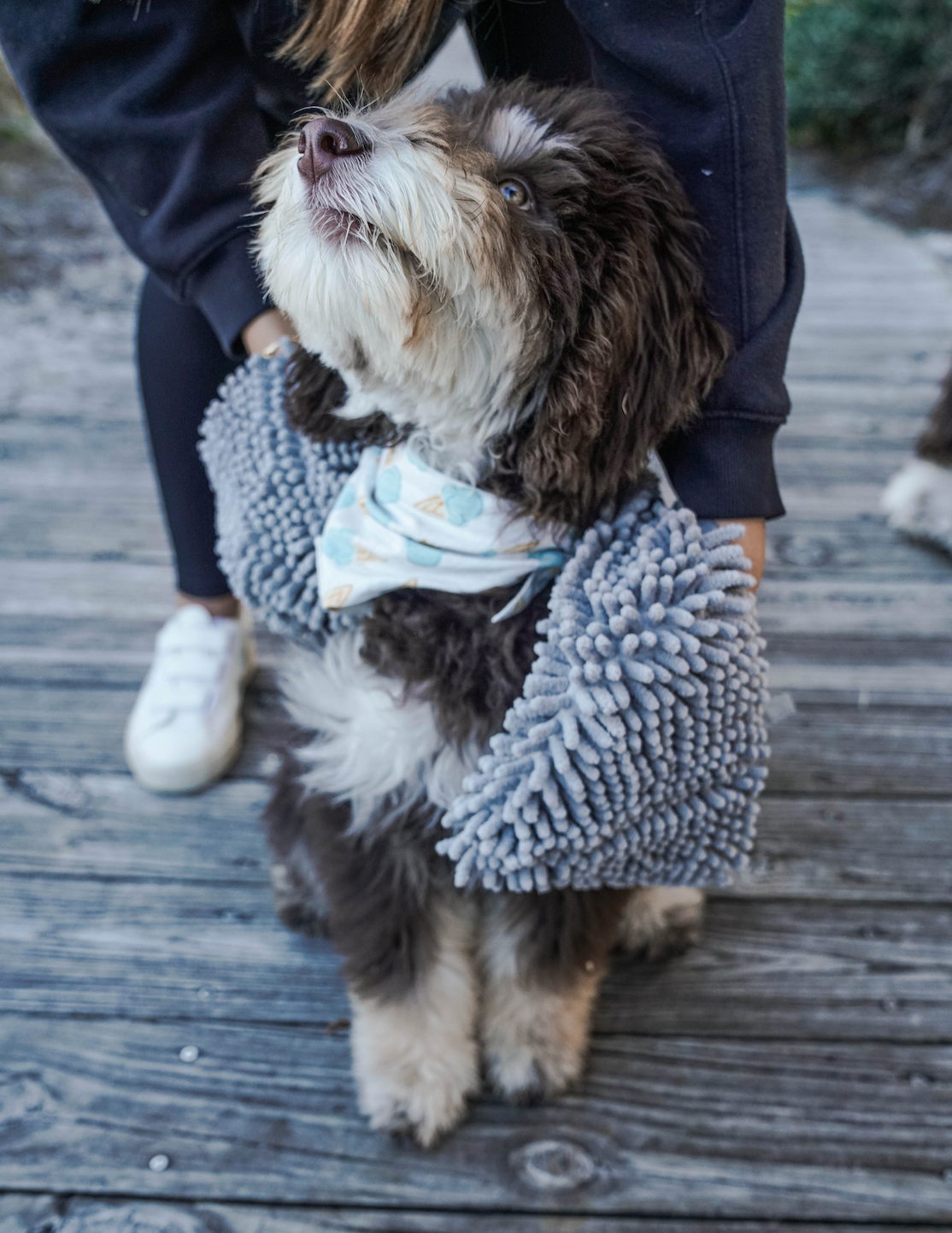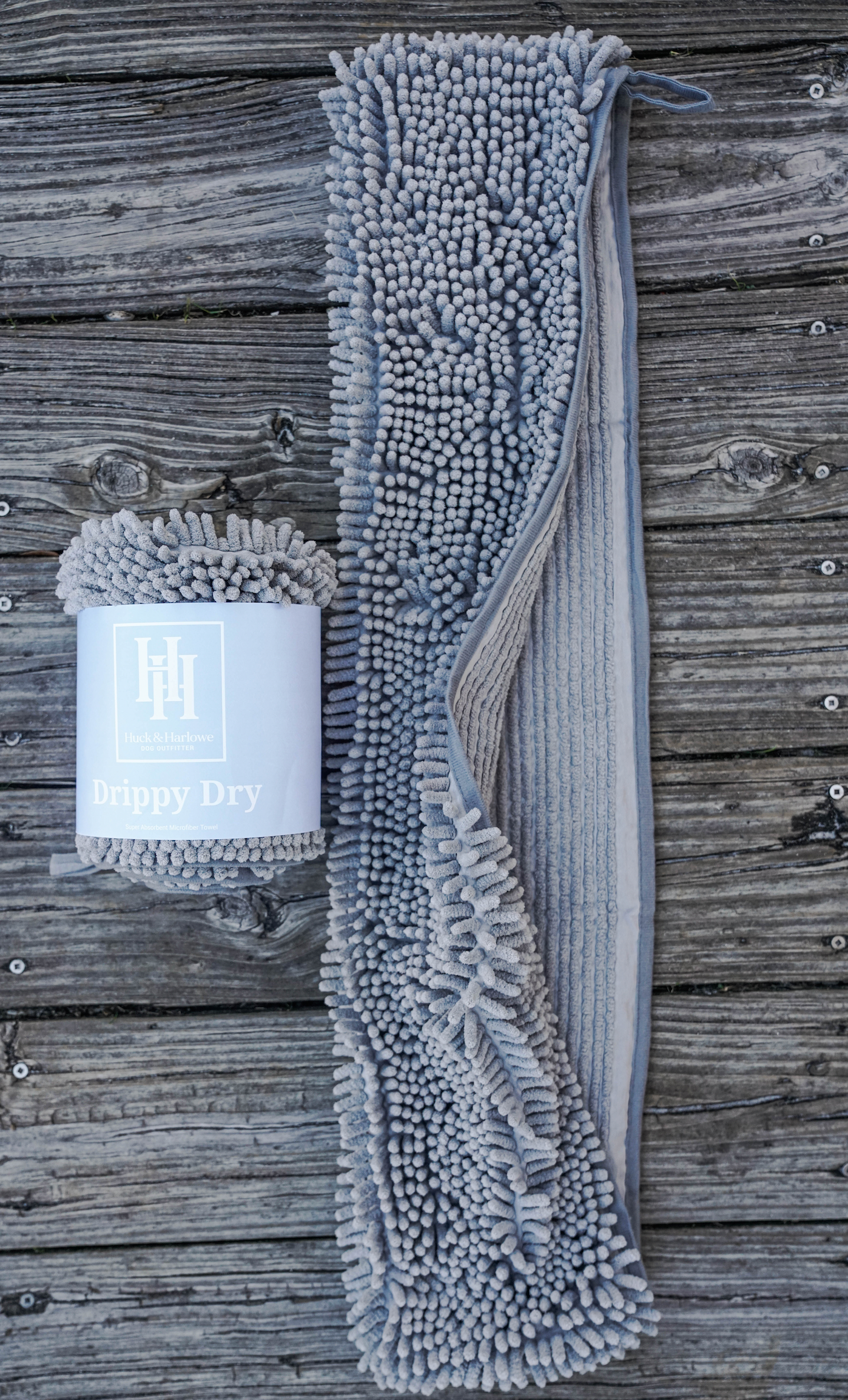 Drippy Dry is a super absorbent microfiber towel that is perfect for drying off your dog. This soft towel holds up to seven times its weight in water, is hypoallergenic, lighter than cotton, dries out fast and even attracts dirt. Plus, the duel hand pockets make it easy to use on even your most squirmy dog. Keep one handy for the beach dog, run in the rain dog, bath time dog, and wet grass dog.