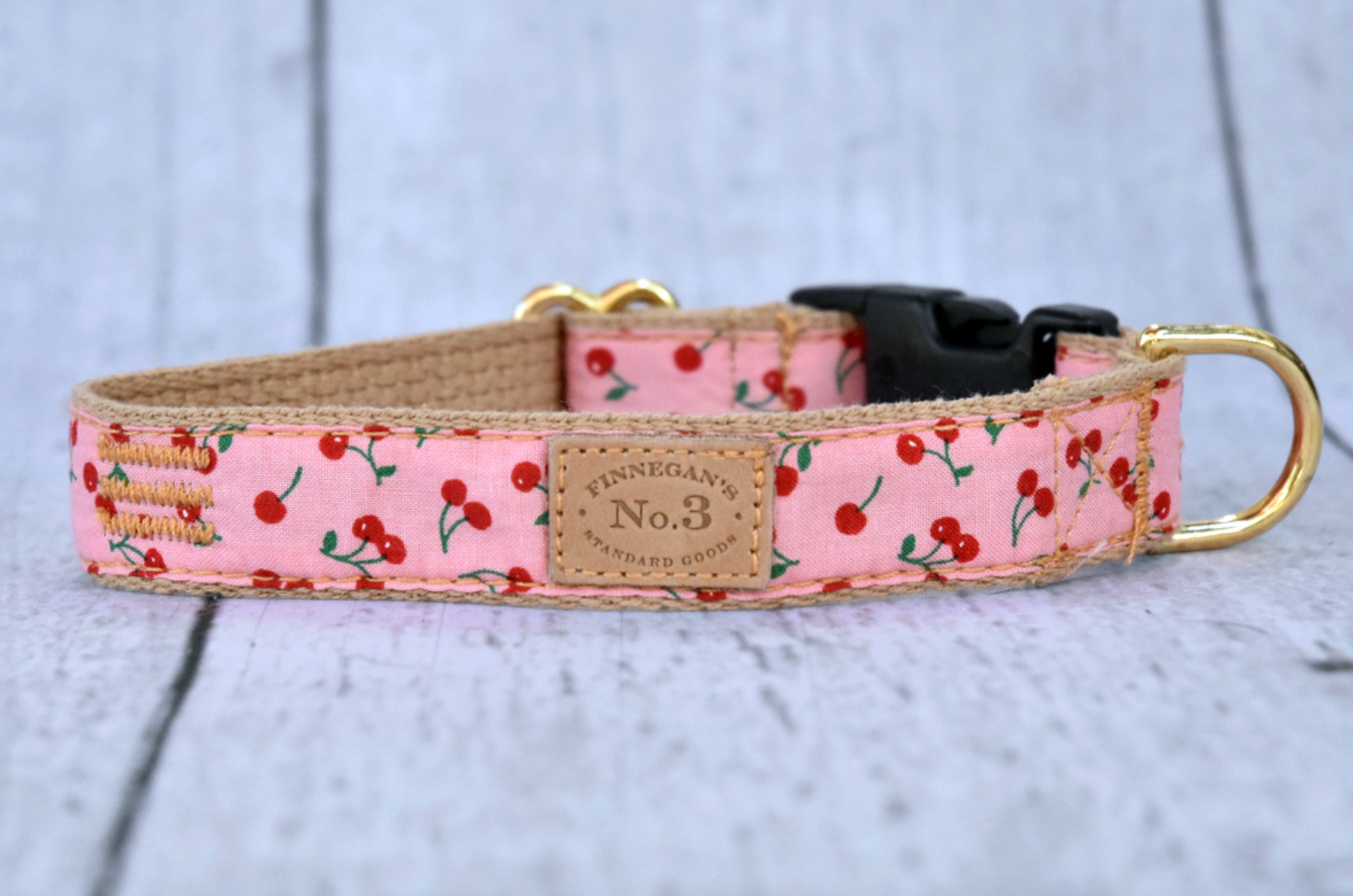 Made on lightweight soft cotton webbing, accompanied by solid brass fittings and an adjustable collar.