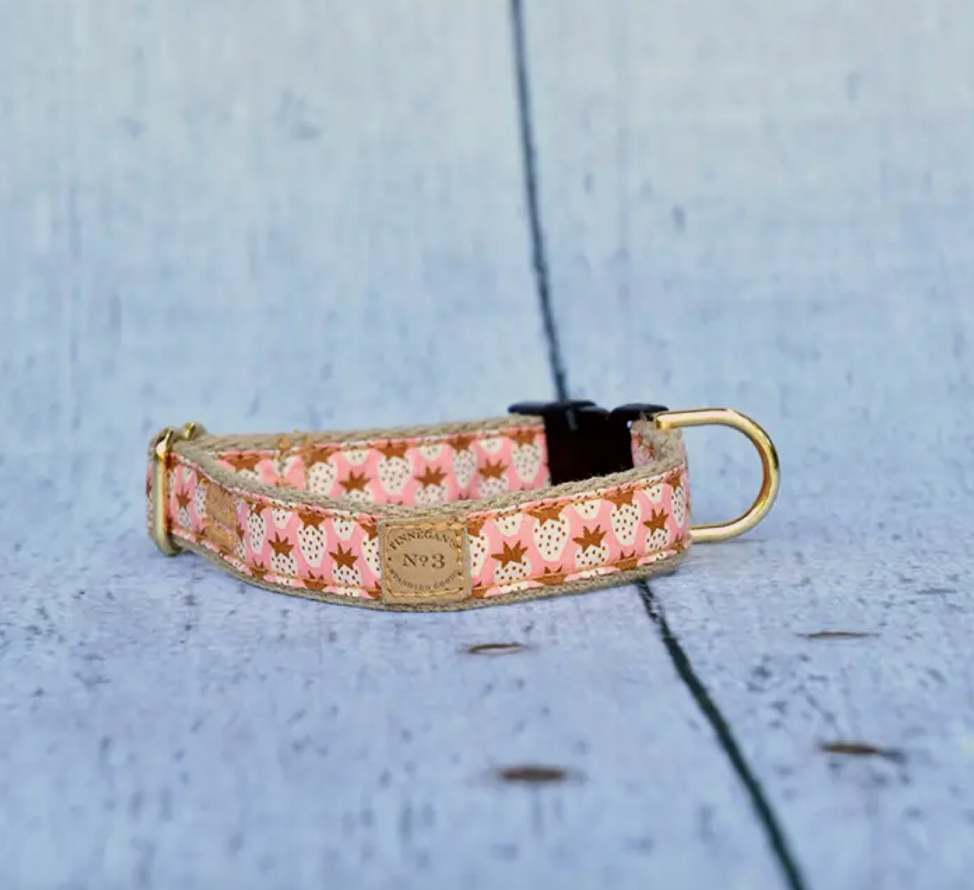 Made on lightweight soft cotton webbing, accompanied by solid brass fittings and an adjustable collar.