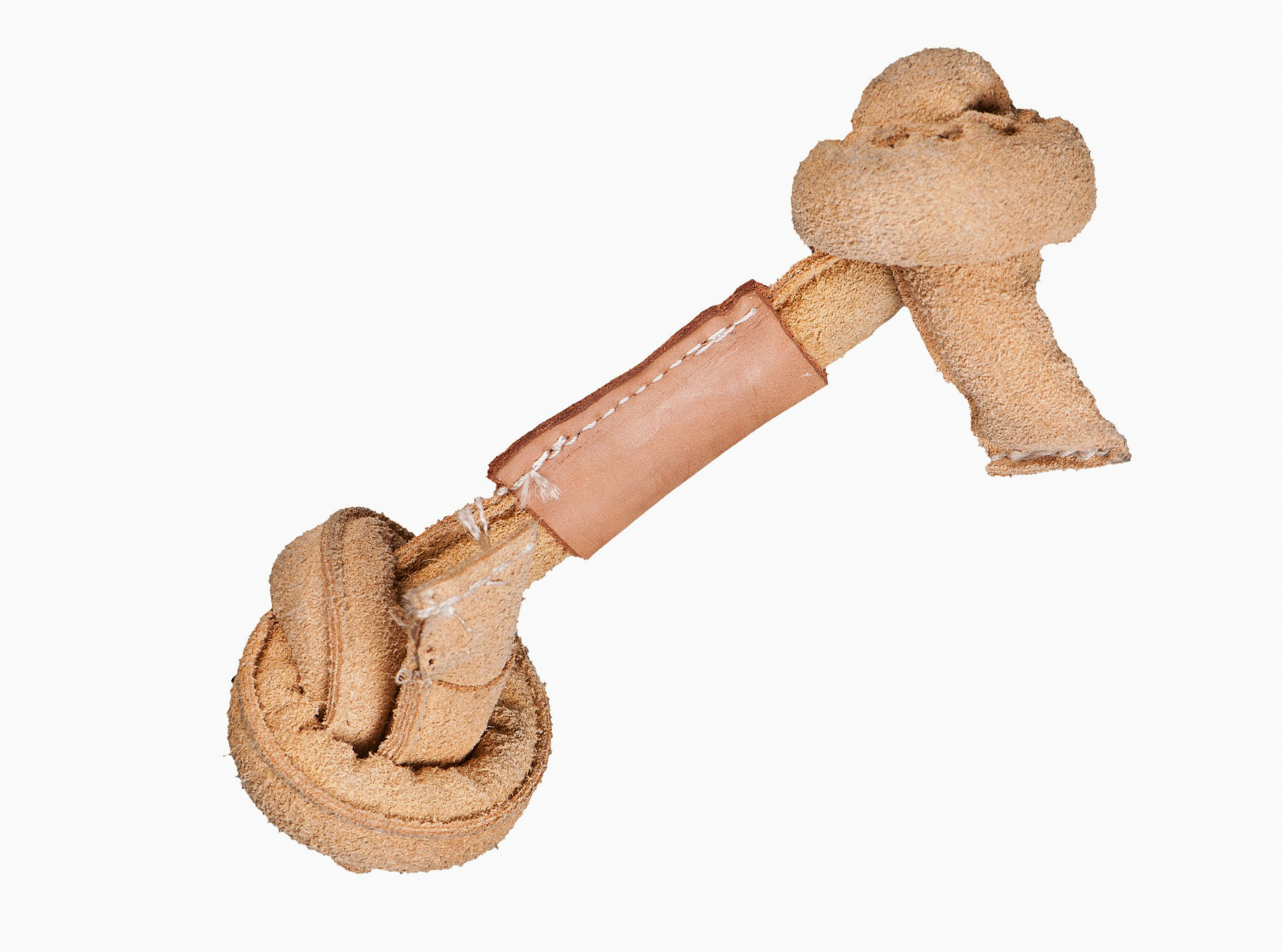 Made with all-natural tanned water buffalo, tanned cowhide in the middle & stuffed with cotton rope. Great rawhide substitute!