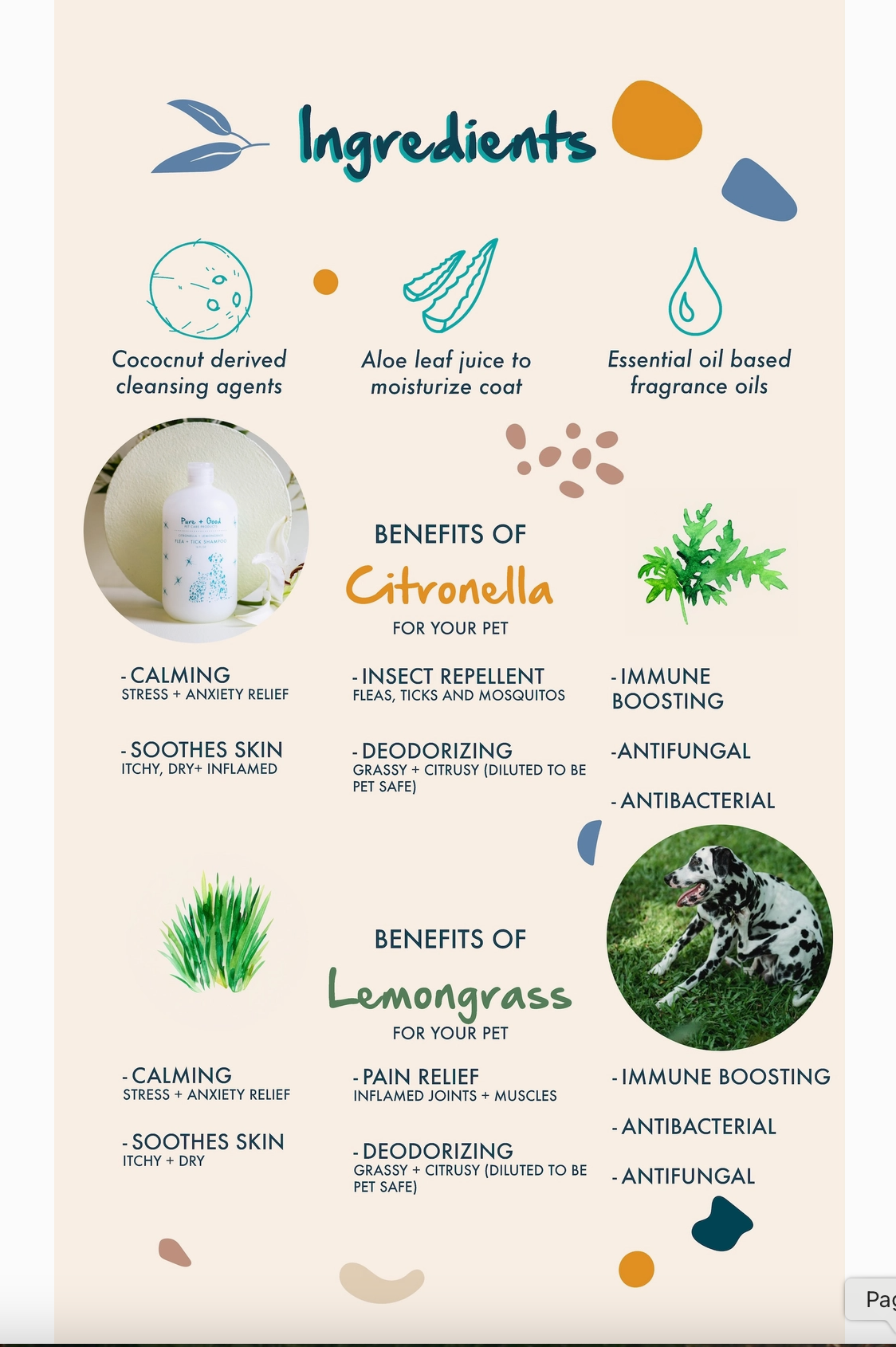 Formulated for all animals, our shampoo is gentle and deep cleansing. Combining ingredients beneficial for improving your pet's coat and wellbeing, a single wash will leave your pet refreshed and smelling pure and good.