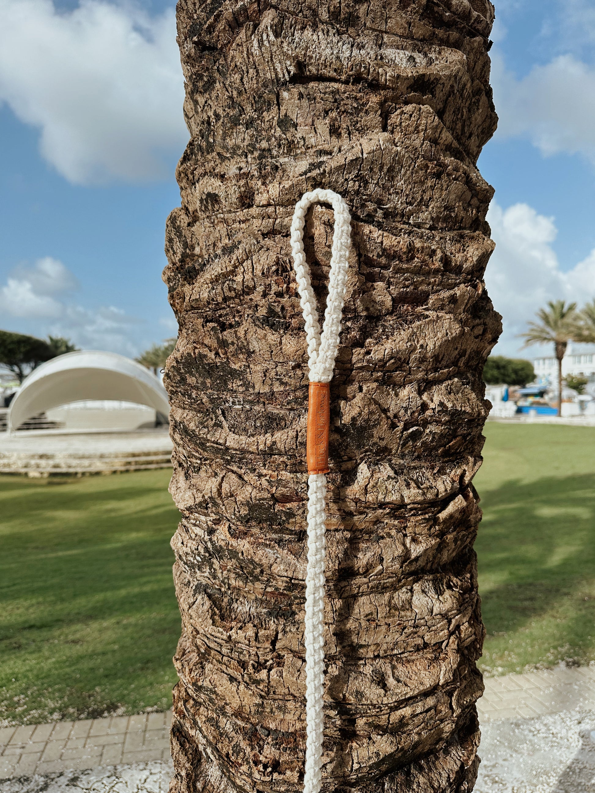 - Leather-stitched sleeve with "Huck and Harlowe"