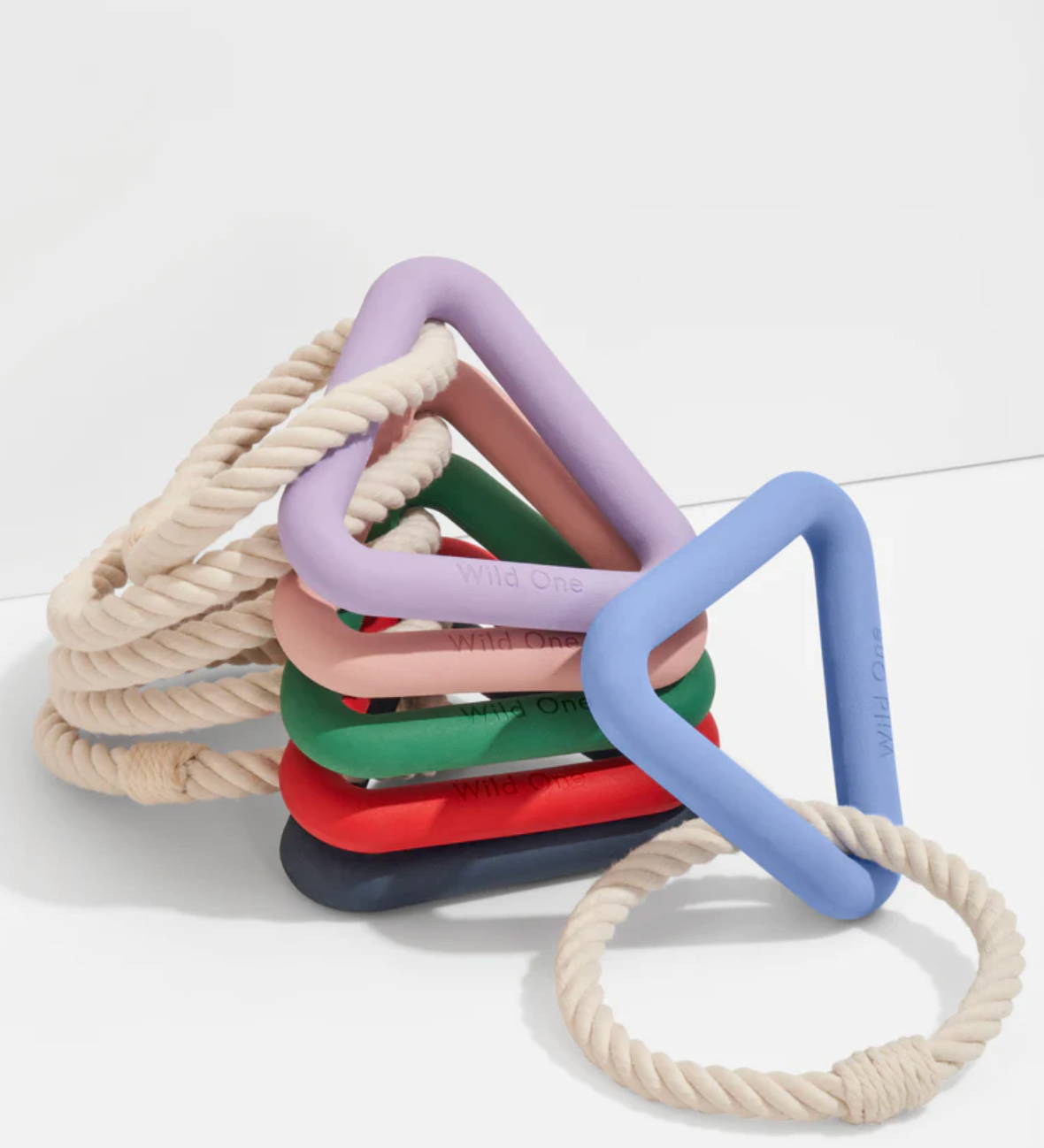 The triangle tug boasts two shapes, two textures, and is perfect for tug-of-war. If you’re in a multi-dog household or if you’re at the other end of your pups tug-match, the triangle tug is built for you. The triangle is 100% natural rubber with a reinforced core for added strength. The rope is 100% natural cotton with a 7x looped seam and reinforced stitching throughout. Bpa-free and tested to meet food-safe standards.